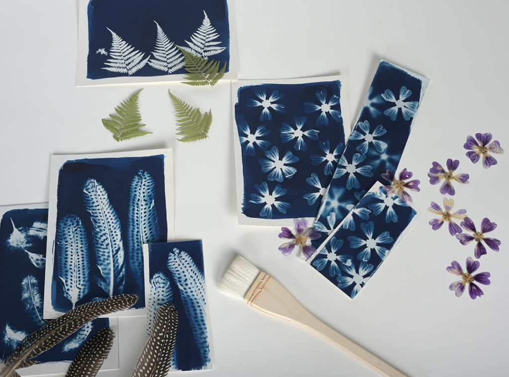 Im letzten Schritt erfolgt die Umwandlung zu einem positiven Foto-Print: Dazu werden Aquarellpapiere mit einer lichtempfindlichen Substanz beschichtet, um Cyanotypien herzustellen.