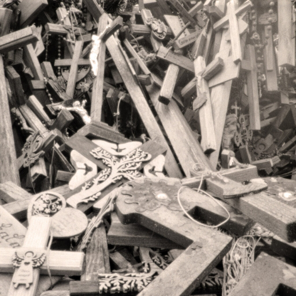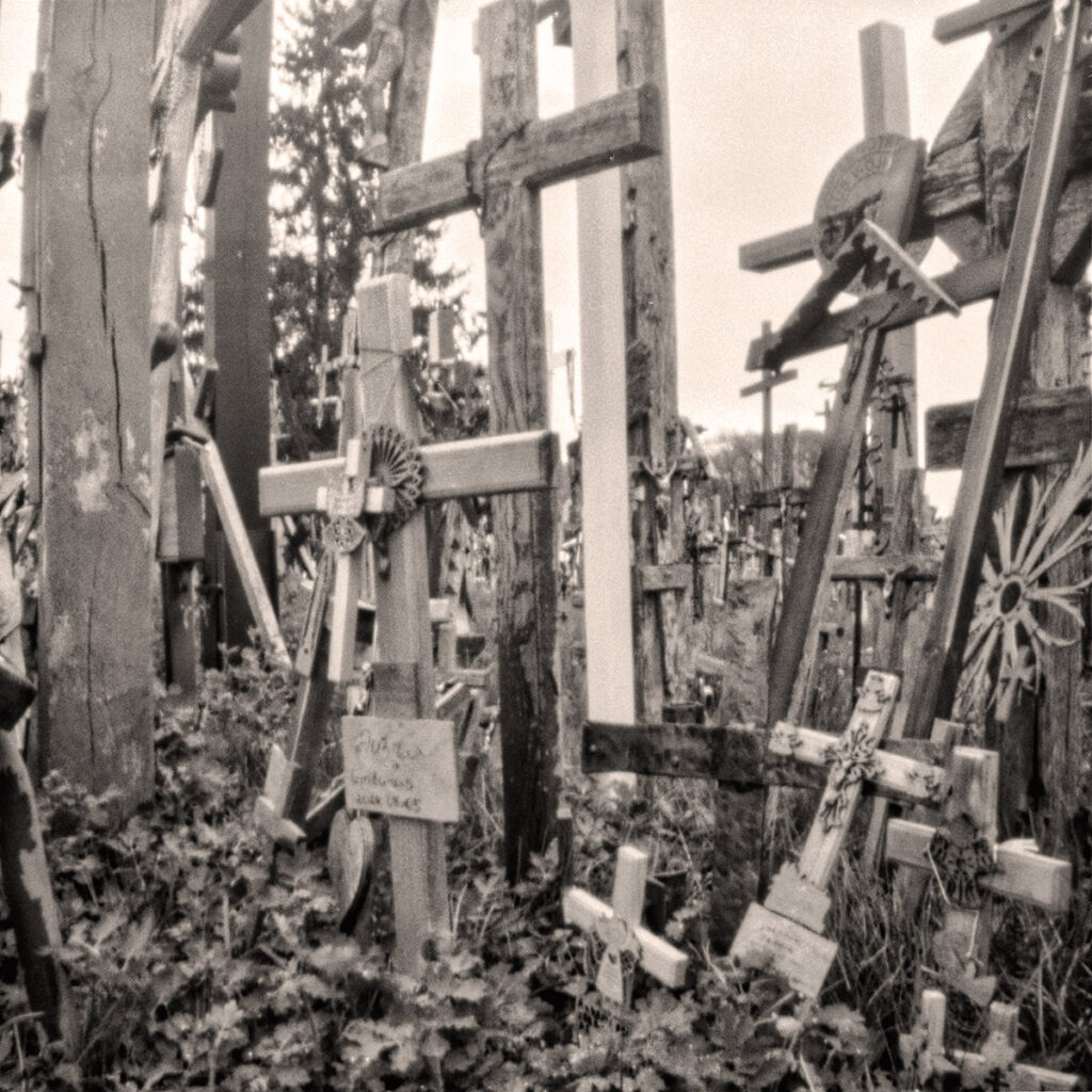 Der Berg der Kreuze ist ein heiliger Ort in Litauen. Seit Jahrhunderten stellen Besucher dort Kreuze auf, um Führbitte zu leisten. Dort gibt es oft mehrere Schichten von Kreuzen. Sie vermodern und überlagern sich und bieten so ein eindrückliches Bild der Vergänglichkeit.